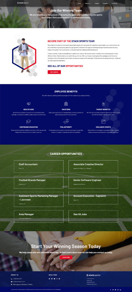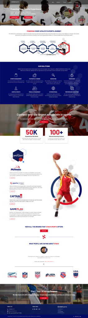 I co-designed and developed the website for Stack Sports, a corporate sports technology company and the parent organization for numerous other sports technology brands. The primary goal of this project was to effectively showcase Stack Sports’ overarching objectives while also highlighting the distinct brands within its portfolio.